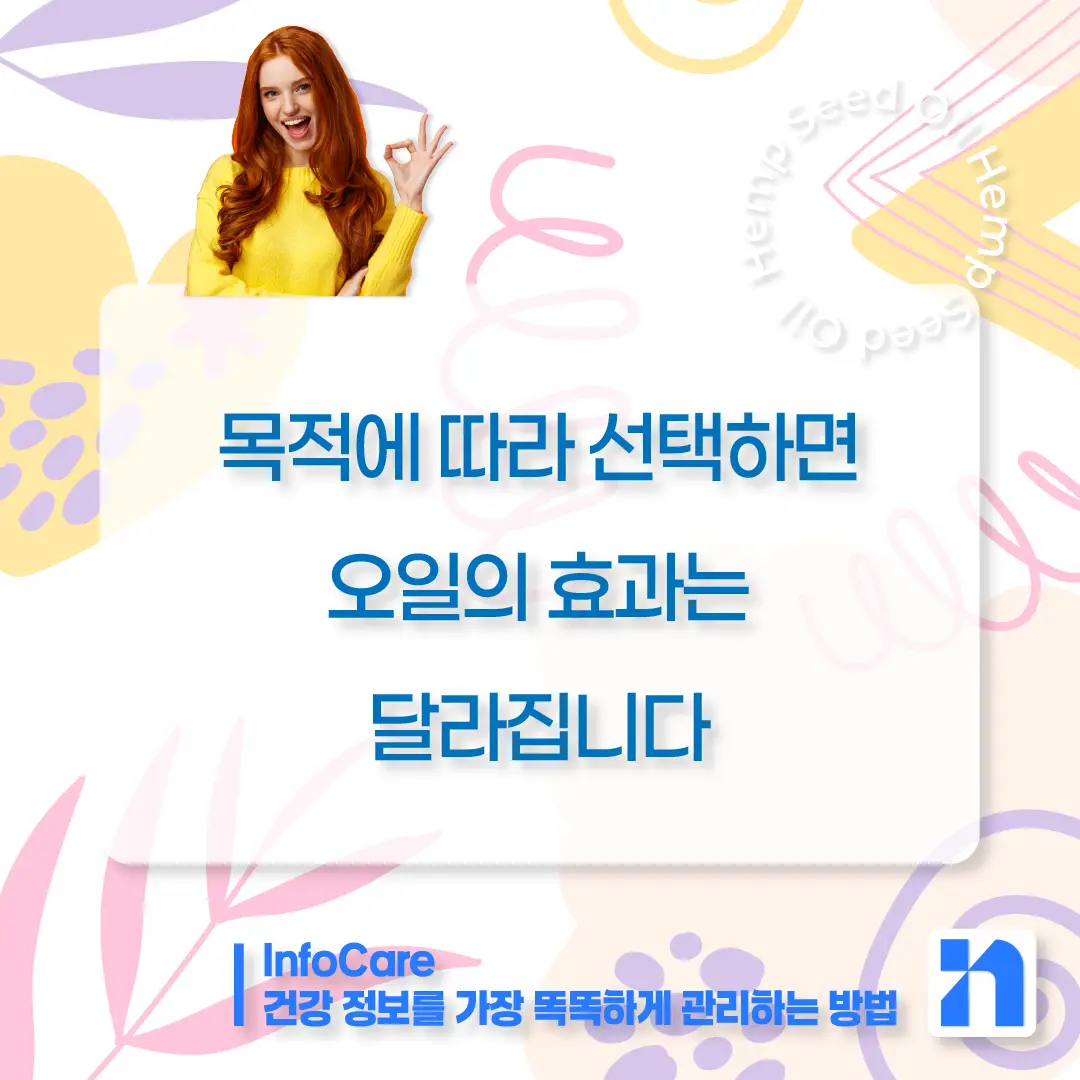 이제 오일도 단순한 영양 보충이 아니라, 목적 중심의 선택이 필요한 시대입니다. 오늘부터 나에게 필요한 오일을 찾아보세요. 오일 선택, 이제는 루틴입니다.