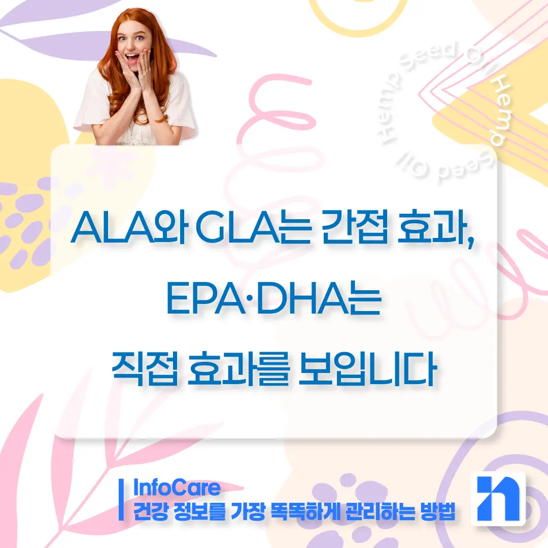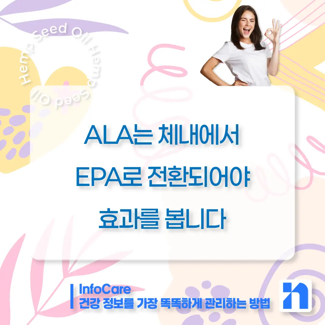 - 대마종자유의 ALA는 체내에서 EPA로 전환되며, 전환율이 낮아 직접적인 효과는 제한적일 수 있습니다.